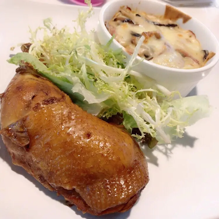 焗卡邦尼意粉配滷水雞髀