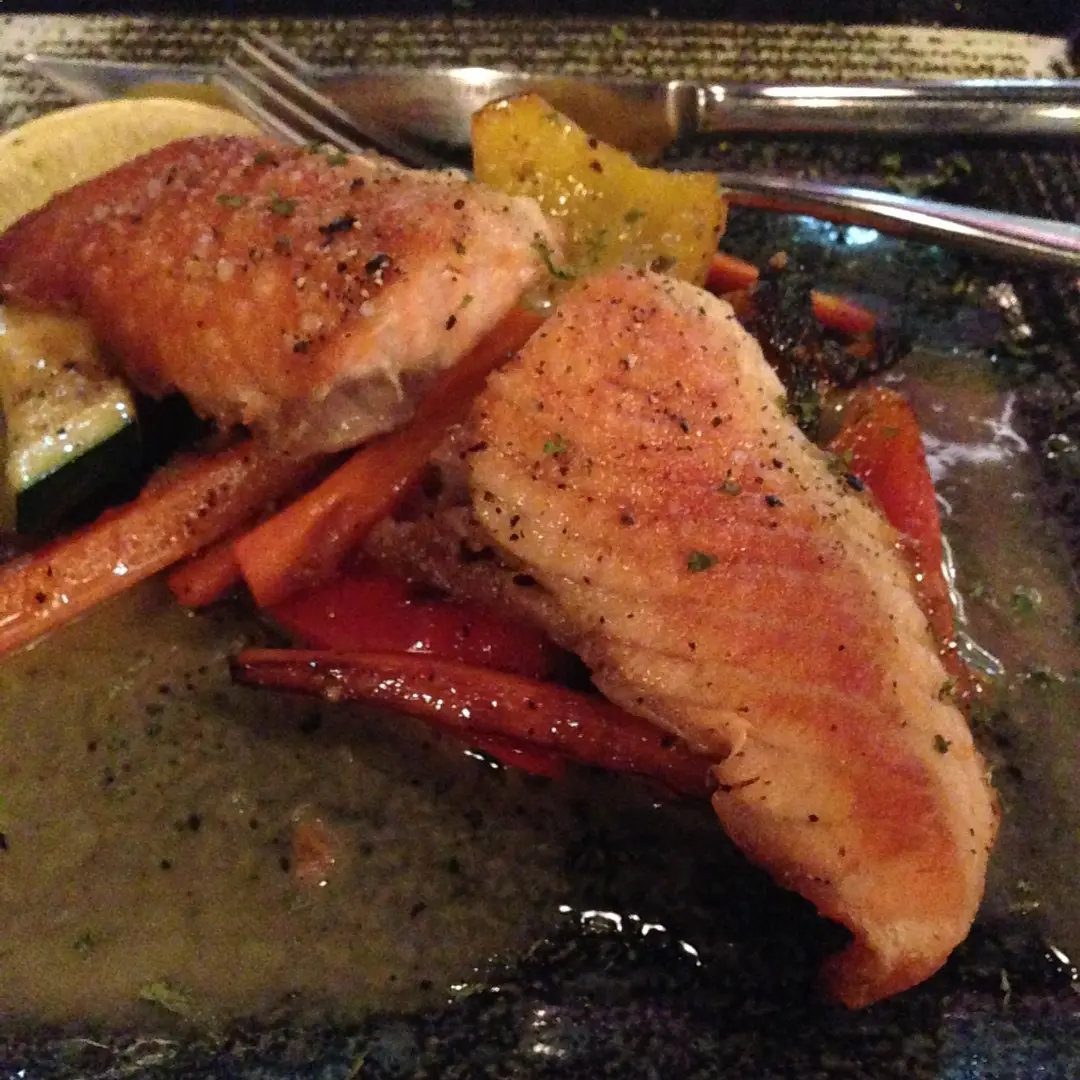 香煎欖油大蒜三文魚配白酒汁