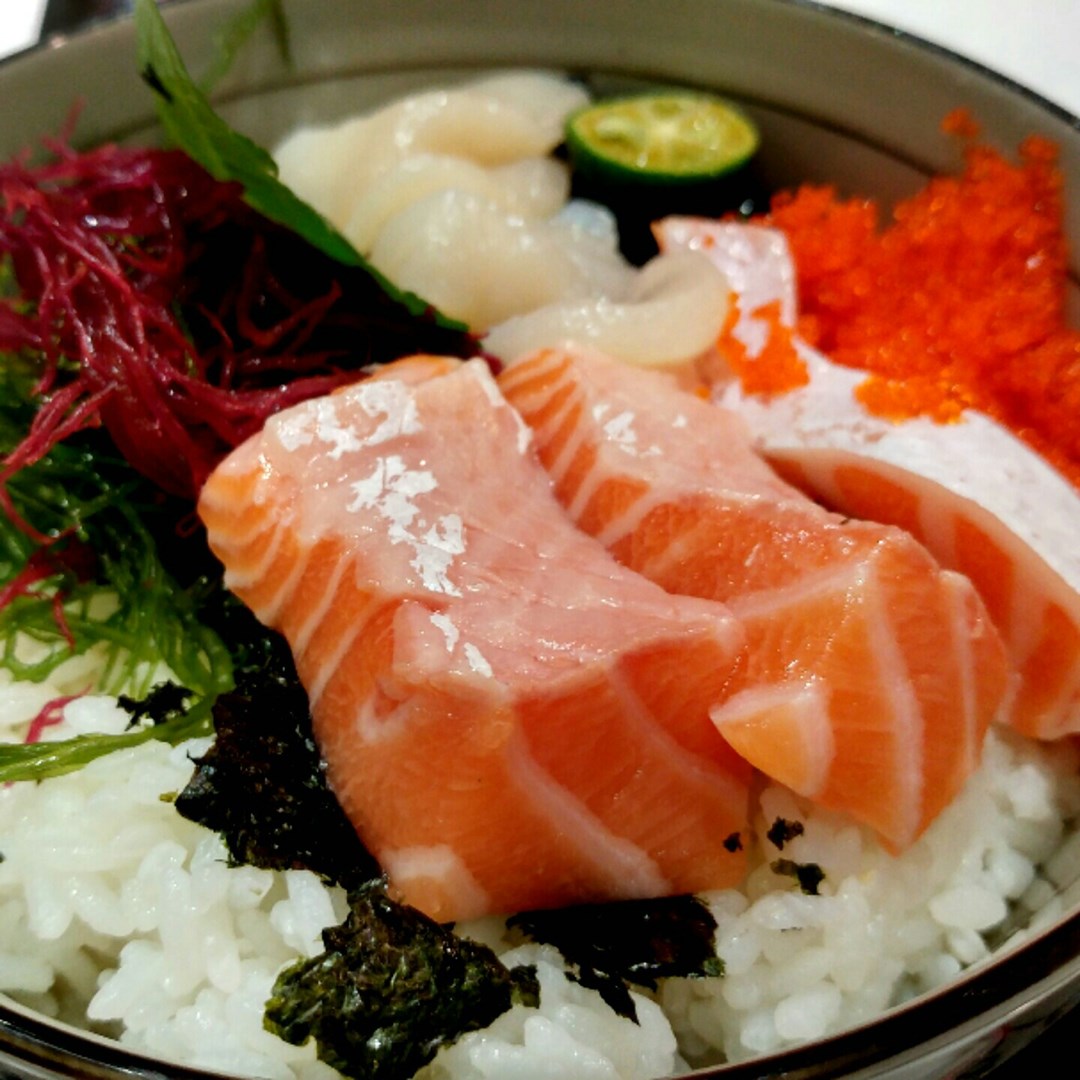 三文魚帆立貝丼