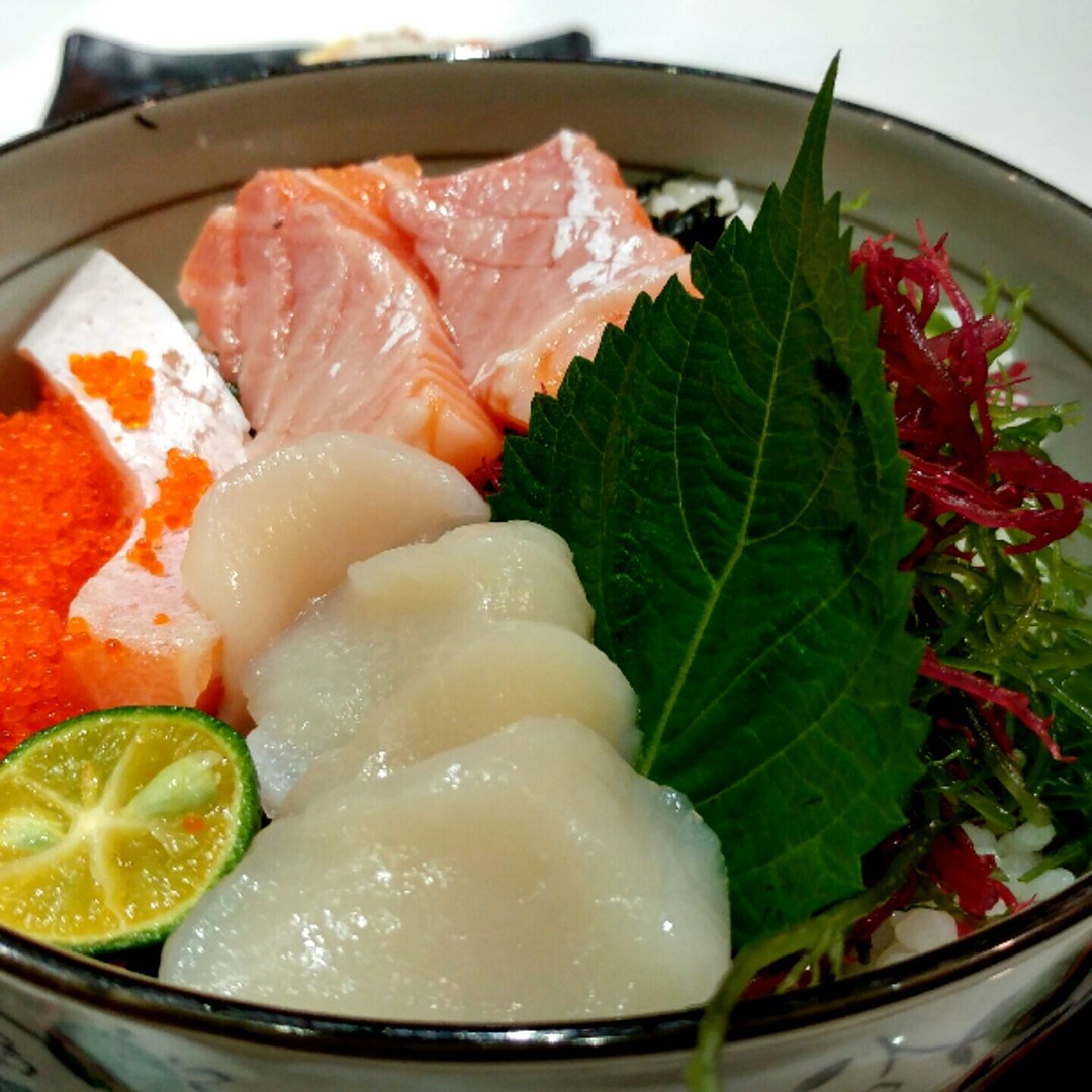 三文魚帆立貝丼