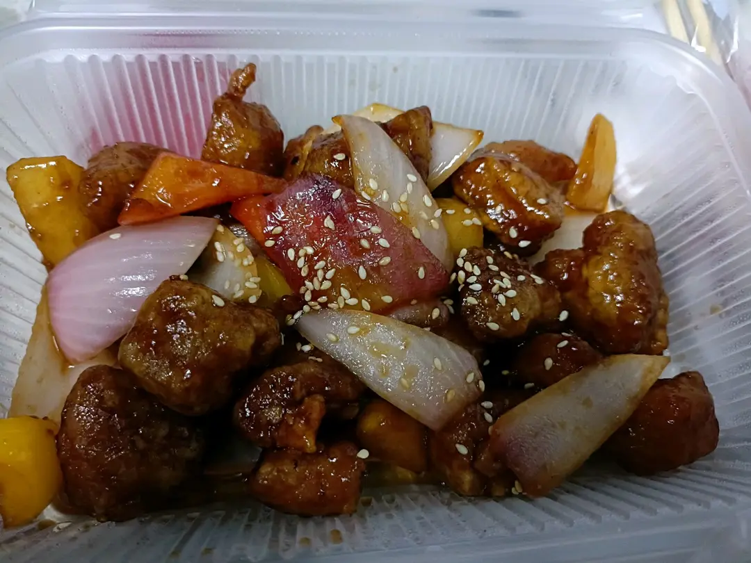 果香菠蘿蜜桃咕嚕肉配藜麥飯