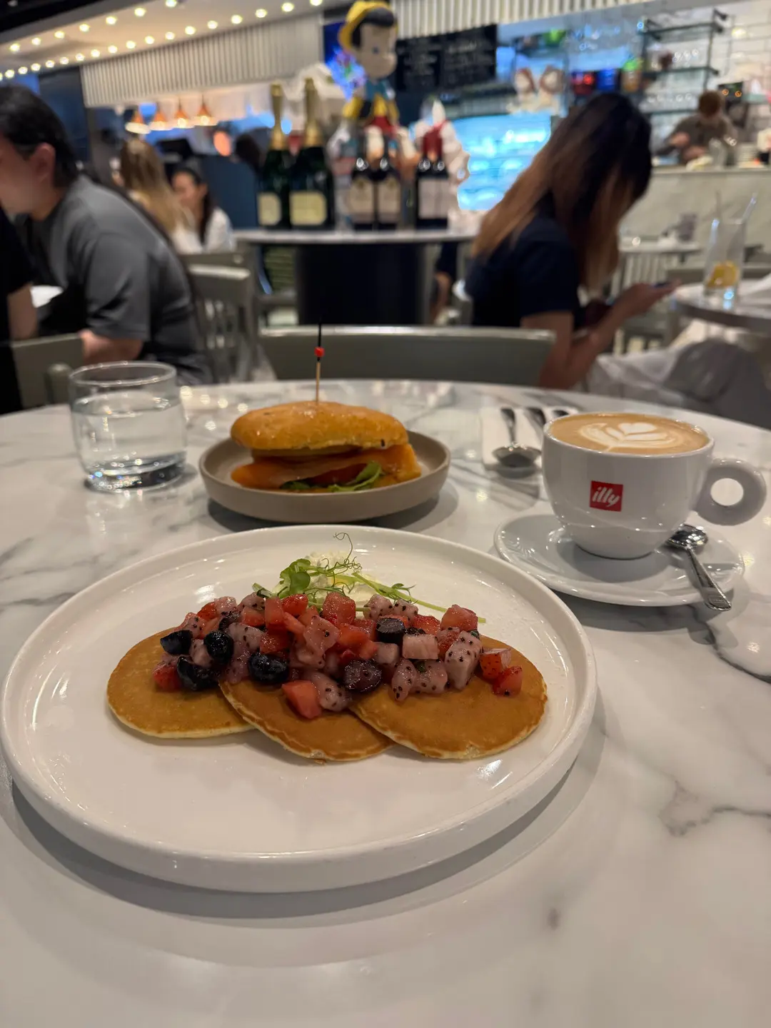 自家製雜莓班戟 煙三文魚意式香草及炸洋蔥圈