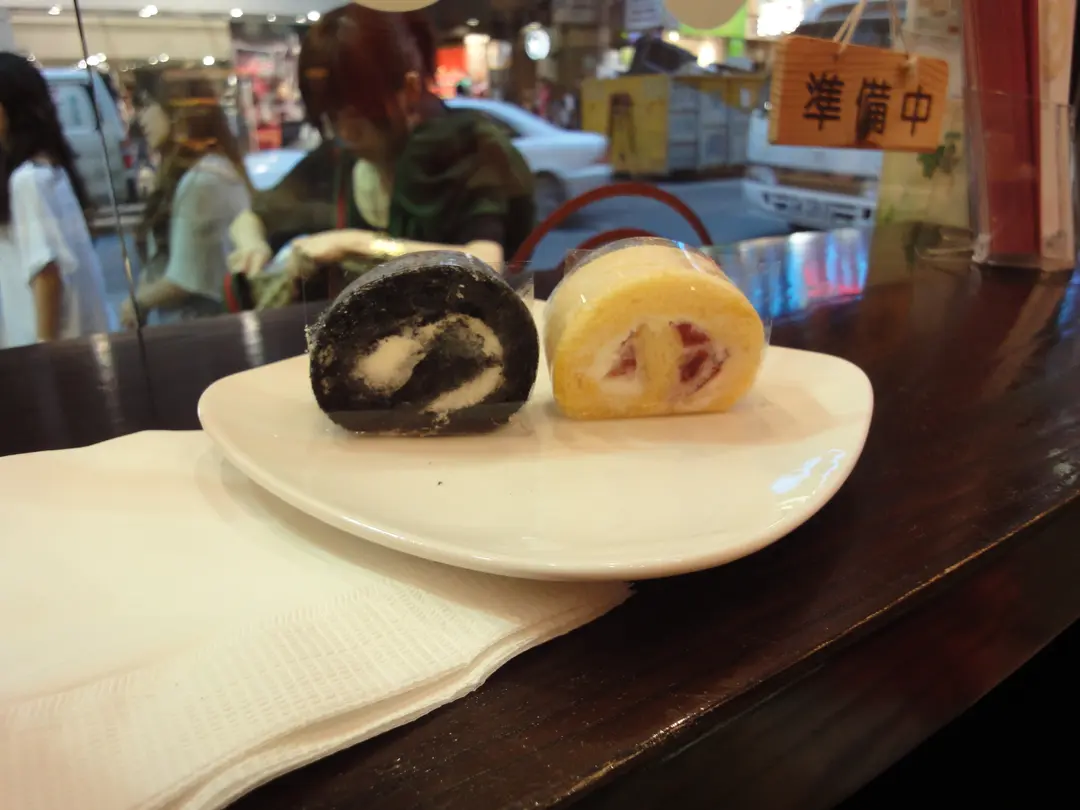 Black sesame roll and strawberry roll