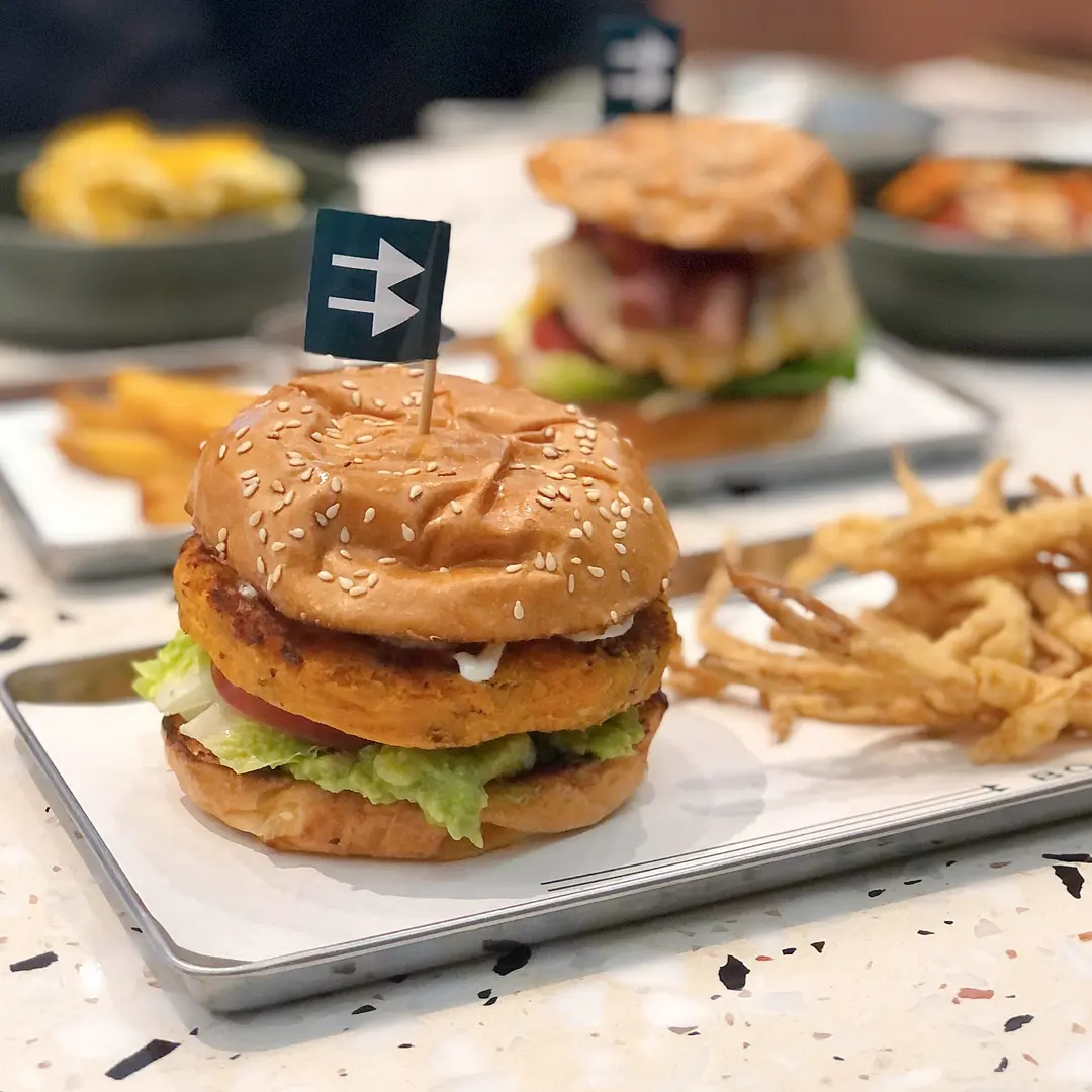 自家製蕃薯漢堡配炸杏鮑菇