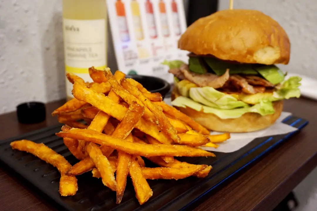 烤豬頸肉漢堡加牛油果