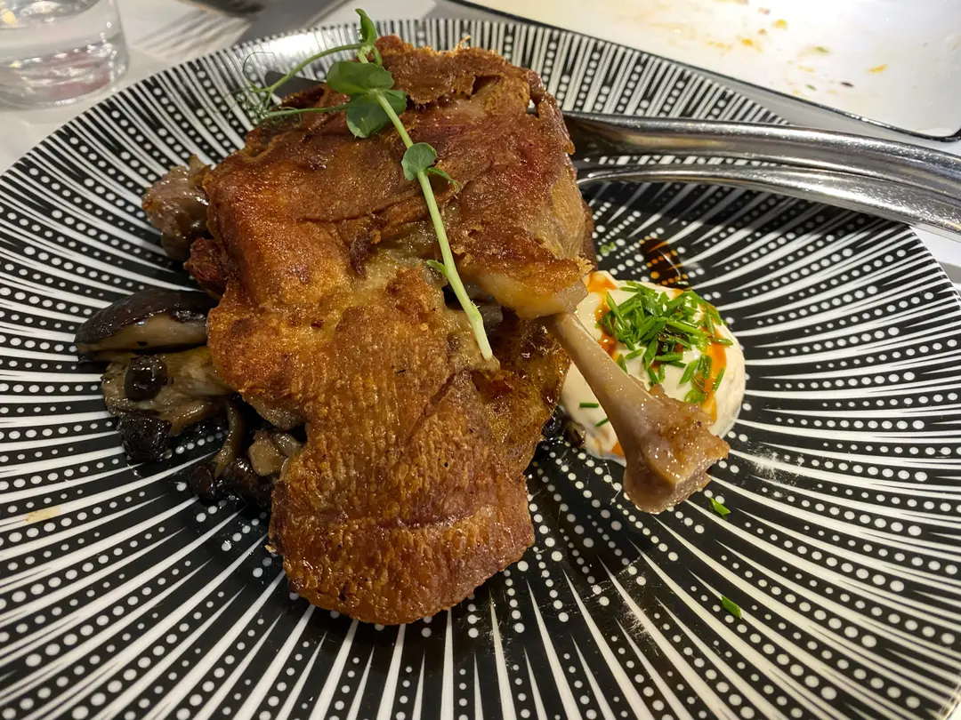 油封鴨髀配杏脯乳酪汁