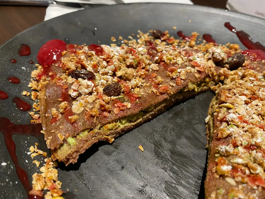 Matcha & Berry Parfait 朱古力味法式薄餅配抹茶忌廉芝士,開心果脆脆及紅莓醬