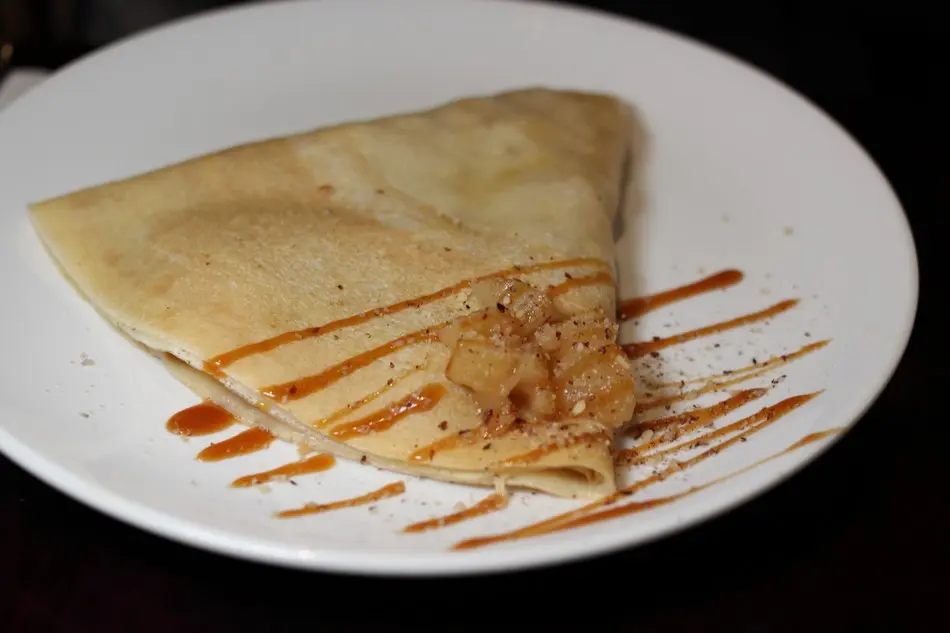 肉桂烤啤梨配鹽味焦糖醬薄餅