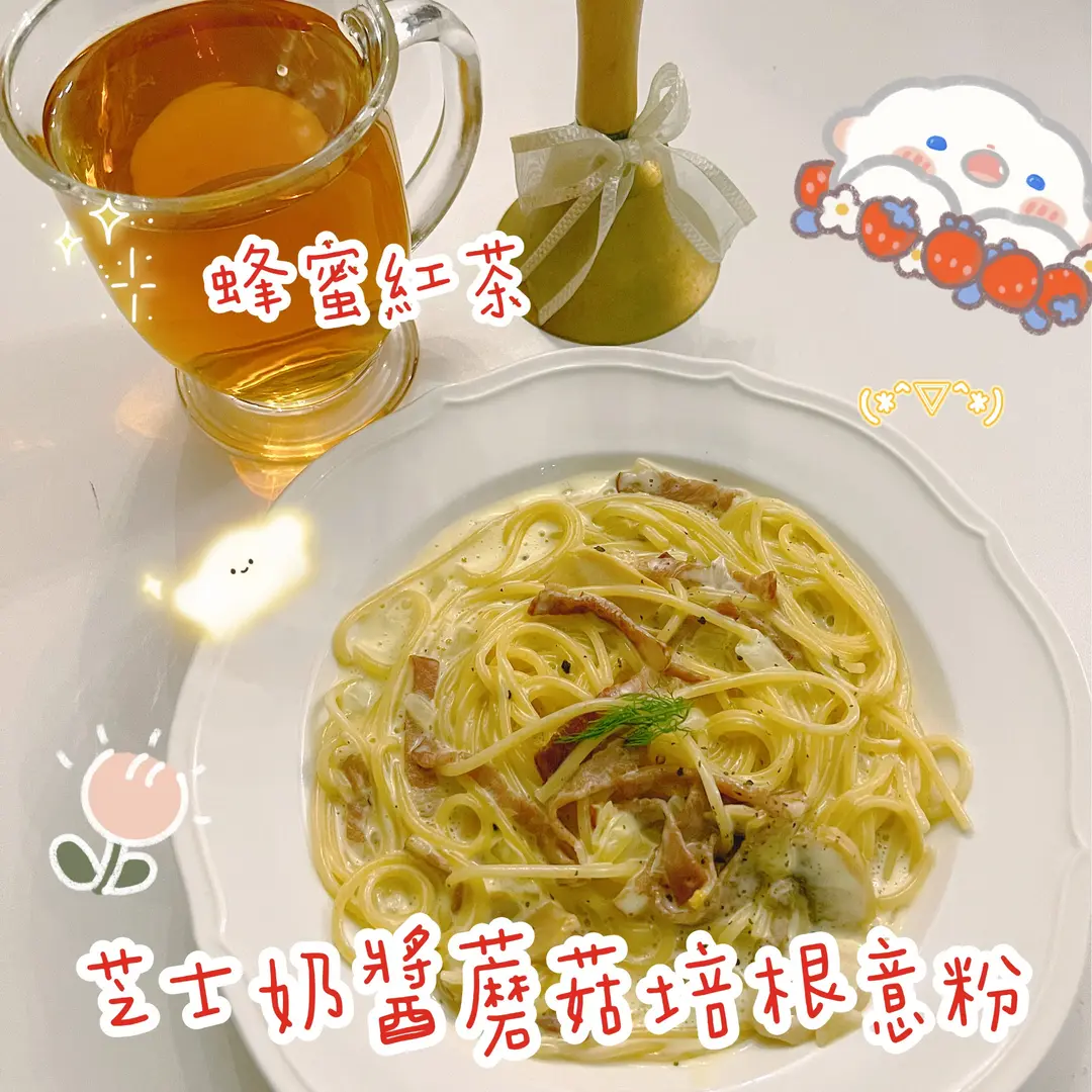 芝士奶醬蘑菇培根意粉