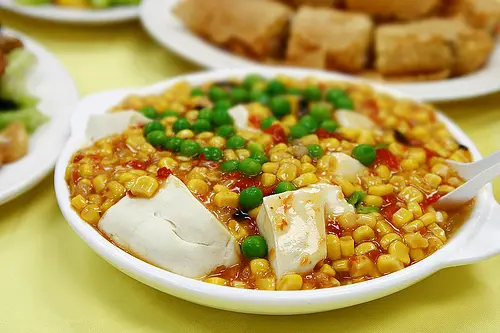 Corn, Tofu in Tomato Sauce