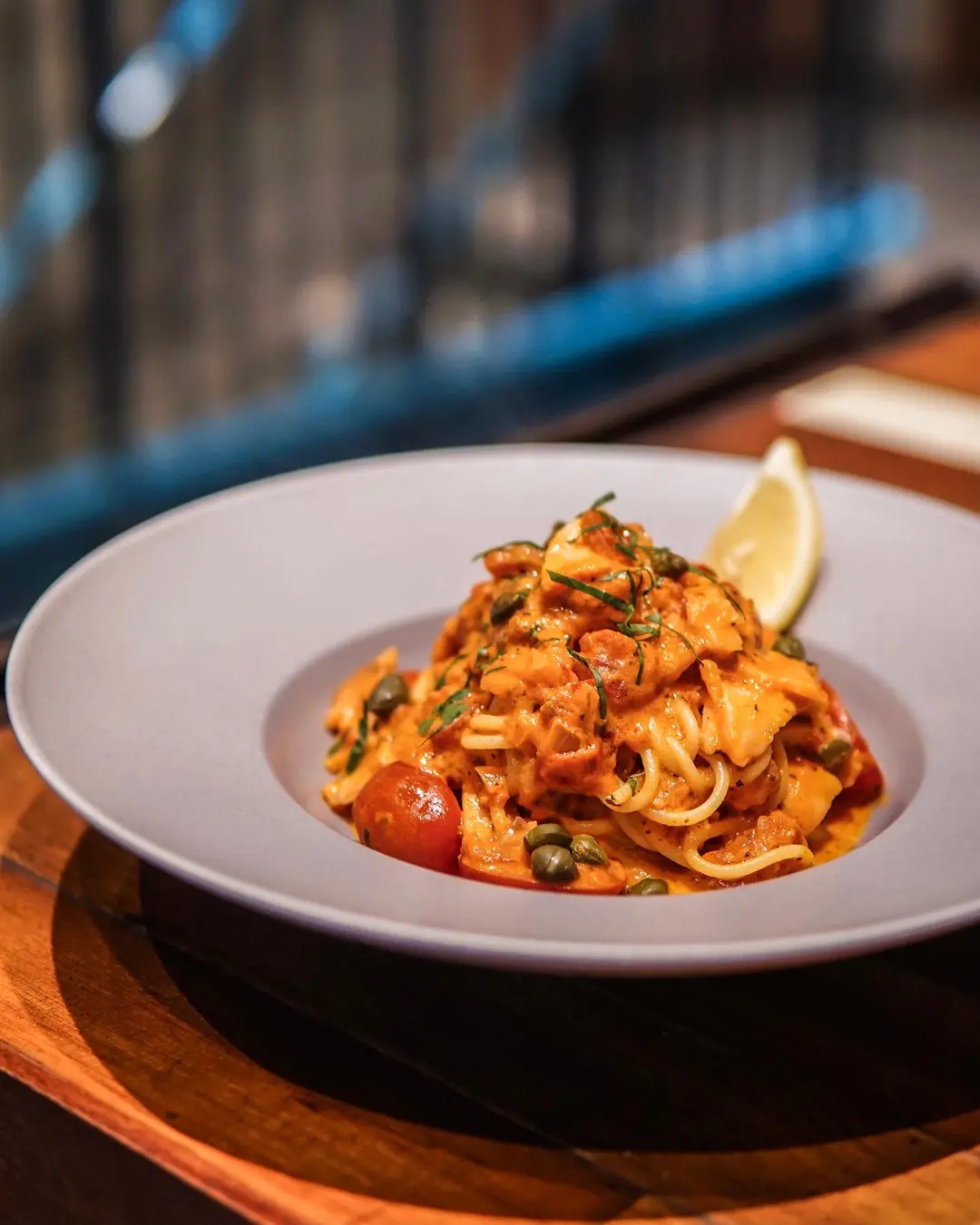 Salmon Capers Spaghetti