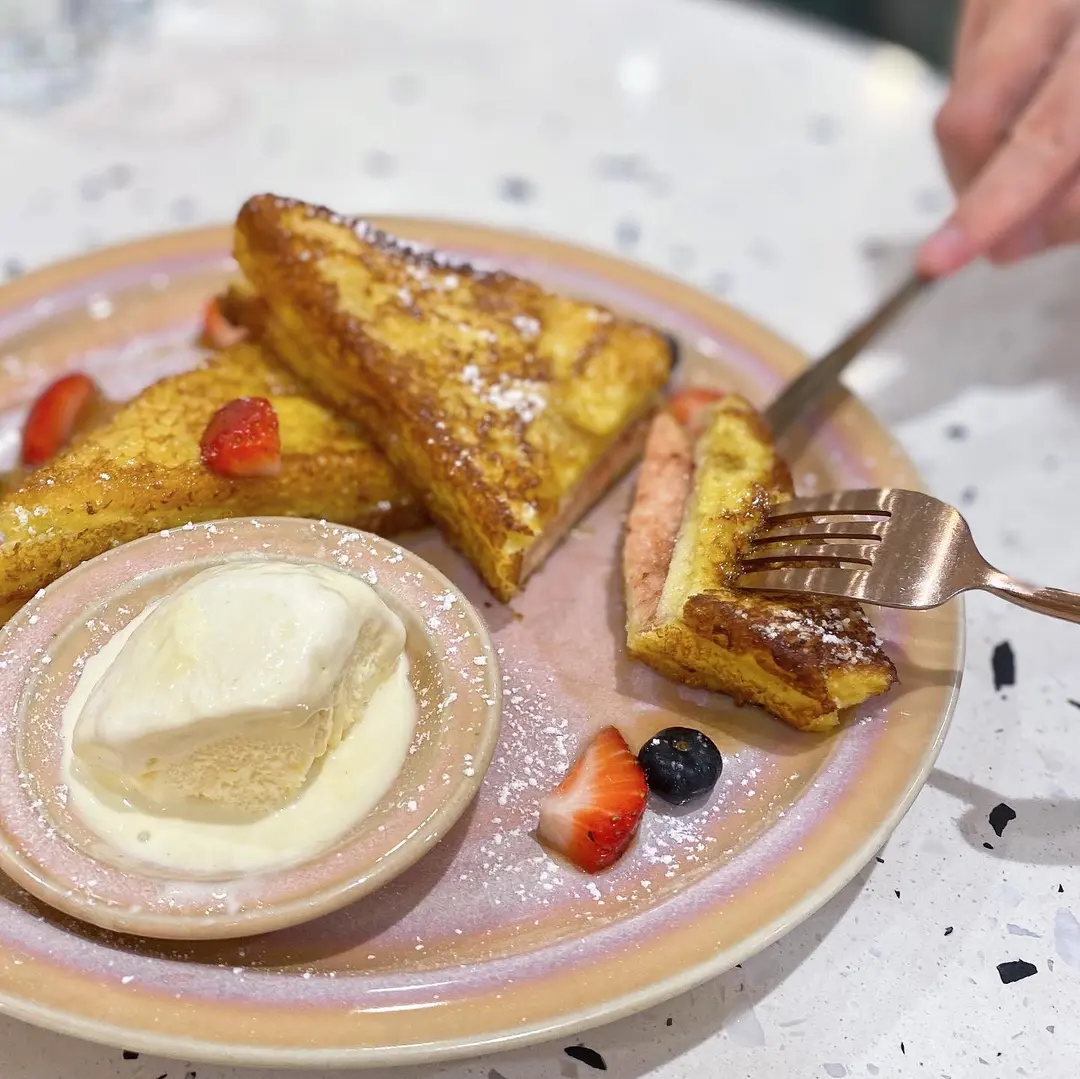 French Toast with Fresh Berries and Ice Cream