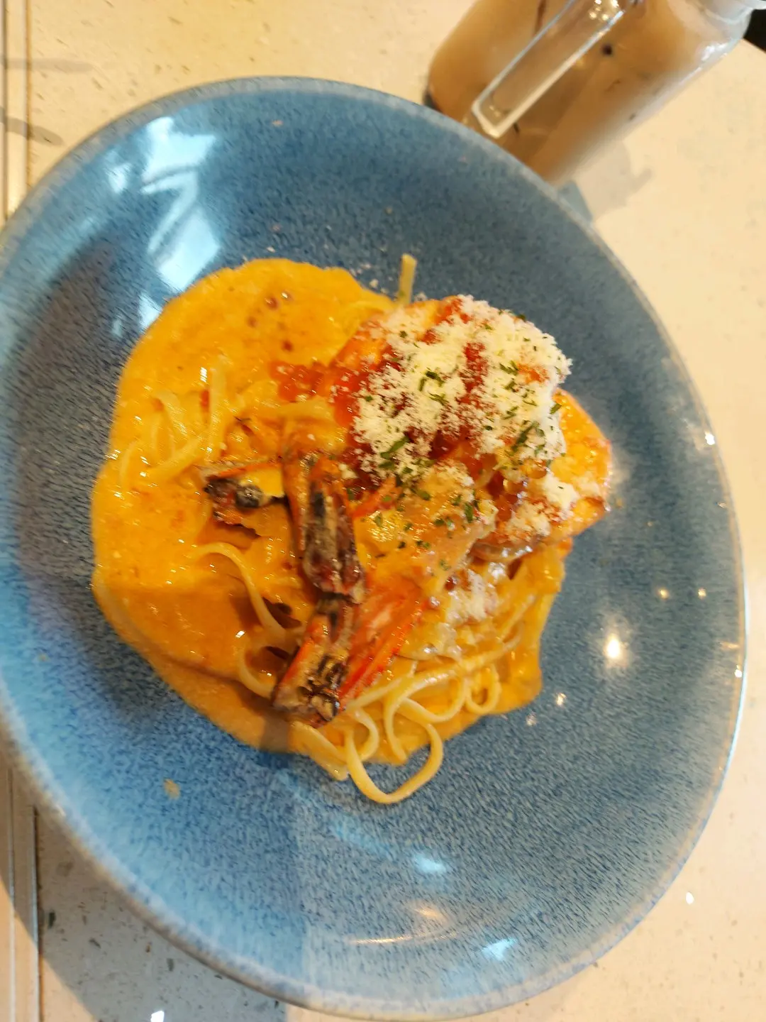燒大蝦三文魚籽龍蝦汁扁意粉