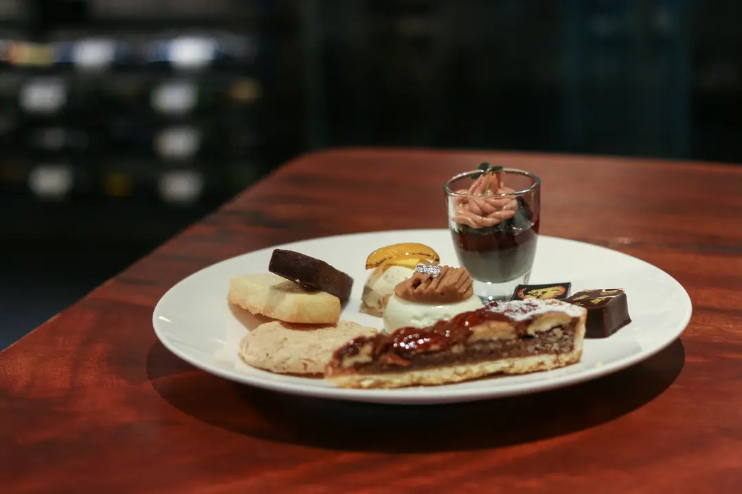 Shortbread, Meringue Cookie, Sesame Black Forest Parfait, Pecan Tart, Chocolate Praline, Chestnut Mont Blanc, Hazelnut Apricot