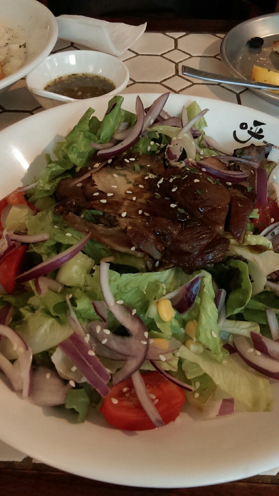vegetable salad with pork and olive oil