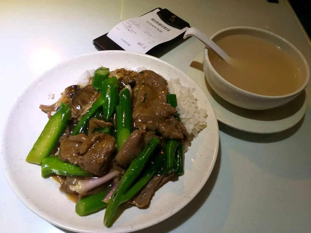 Stir fried vegetables with beef and rice set