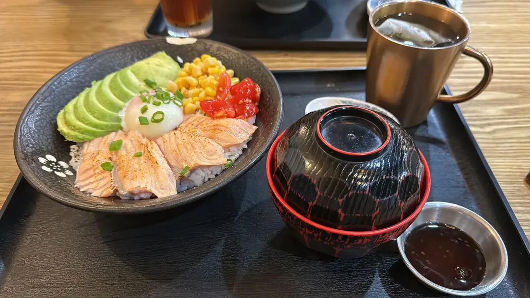 溫泉蛋炙燒三文魚牛油果丼