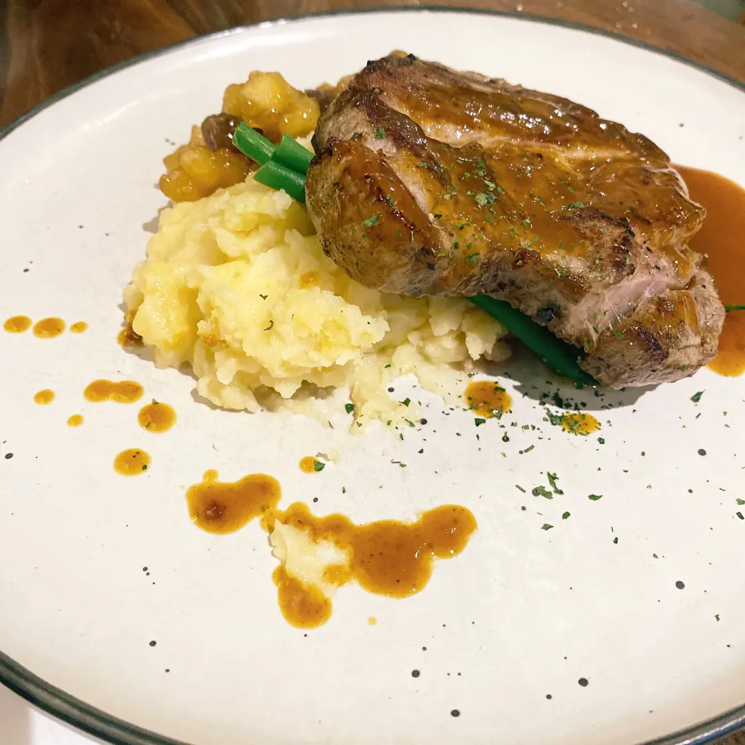 慢煮厚切日本四元豚肉 •薯蓉•肉桂蘋果