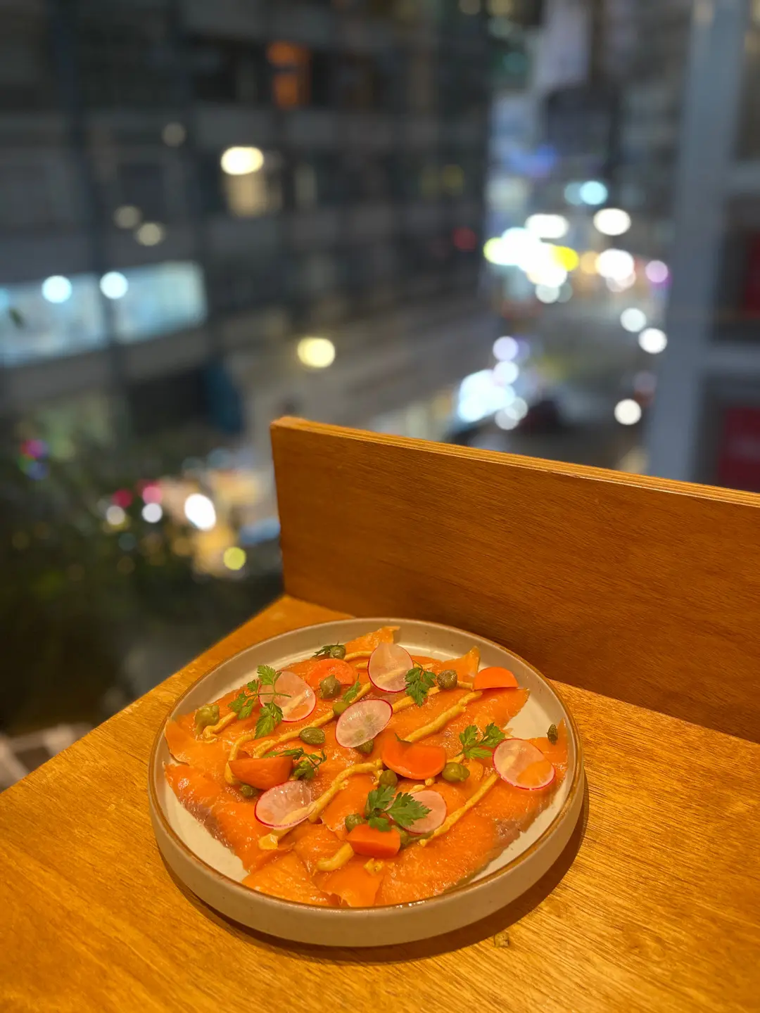 煙三文魚薄切•醃小蘿蔔•香橙忌廉汁