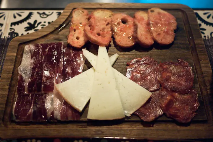 Iberico, manchego, chorizo, and tomato toast.