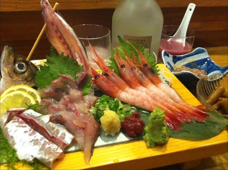 秋刀魚、甜蝦刺身