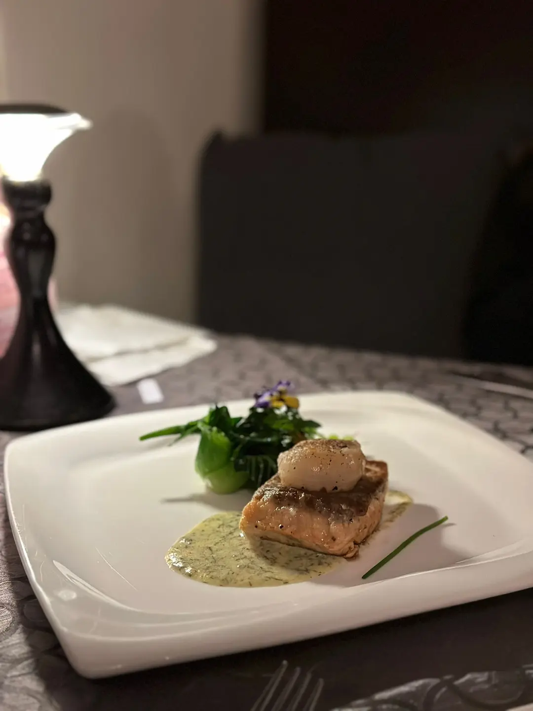 三文魚扒帶子配刁草忌廉汁
