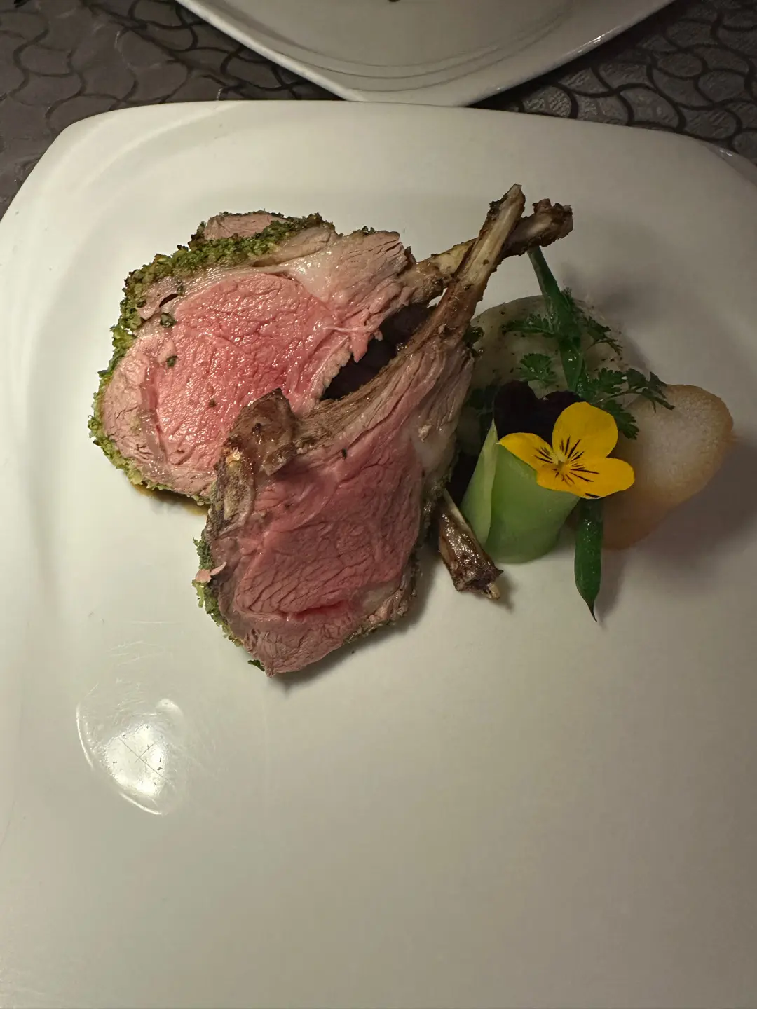 香草果仁焗紐西蘭羊鞍架配露絲瑪莉紅酒汁