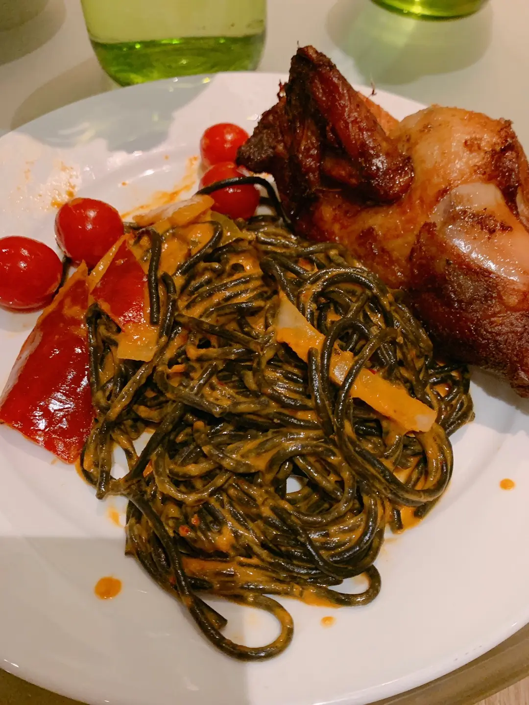 燒春雞配紅咖哩墨魚麵
