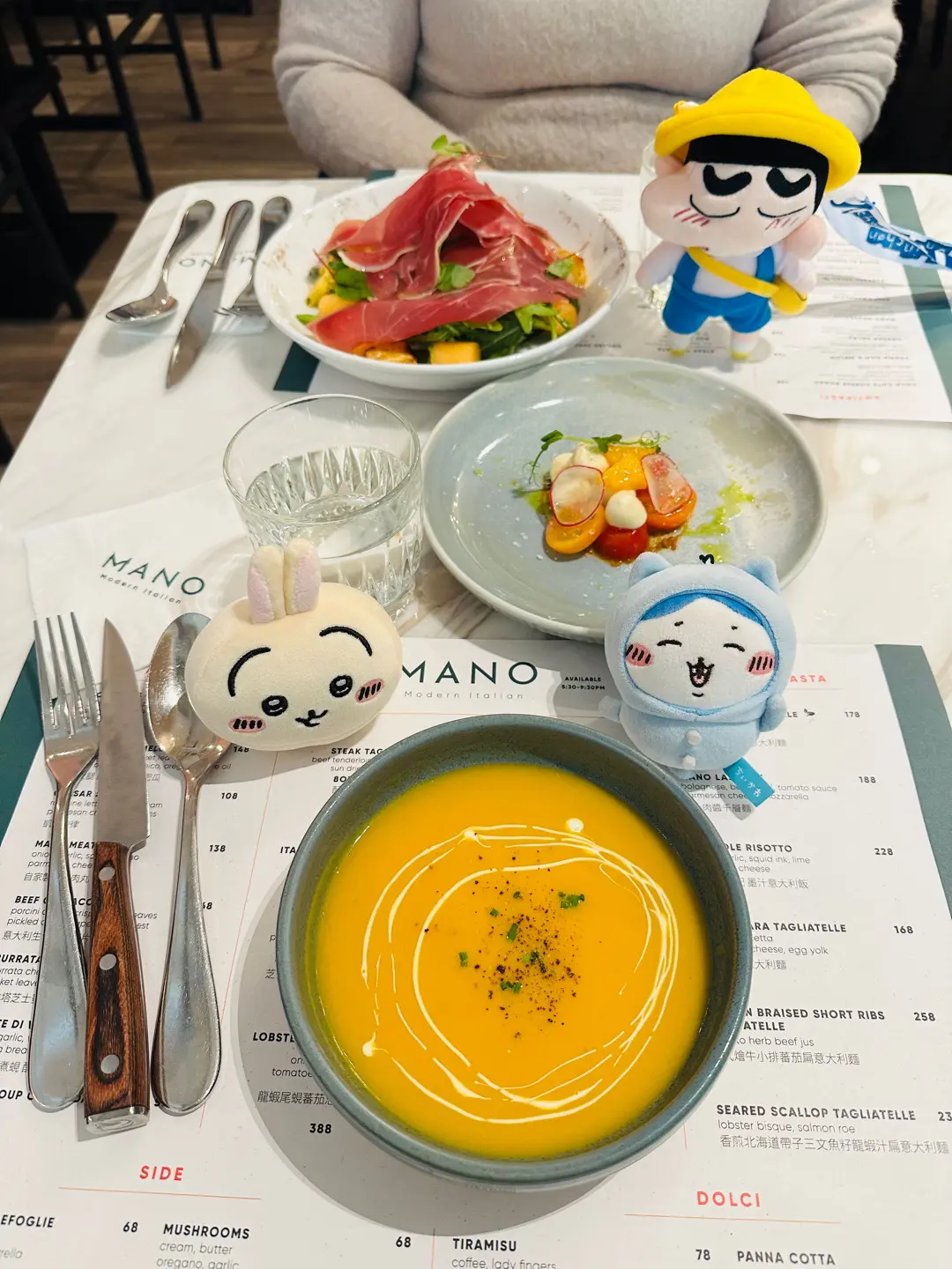 前菜 南瓜湯及香草車厘茄芝士沙律