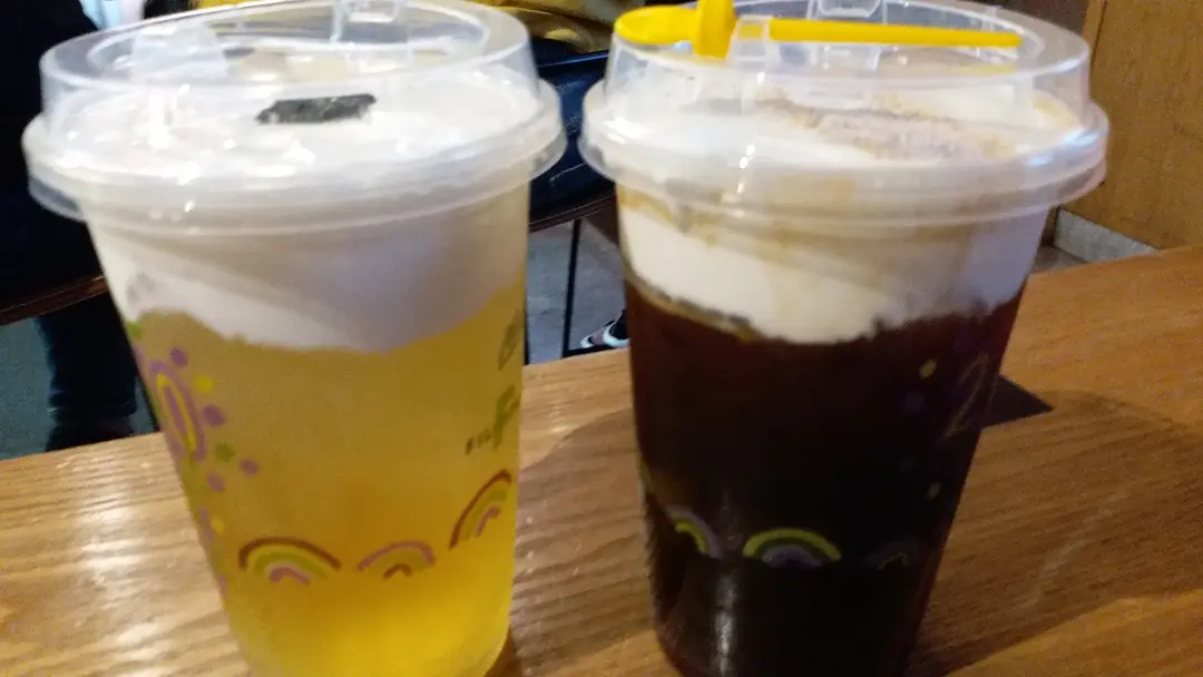 芝士奶蓋四季春 & 芝士奶蓋黑咖啡