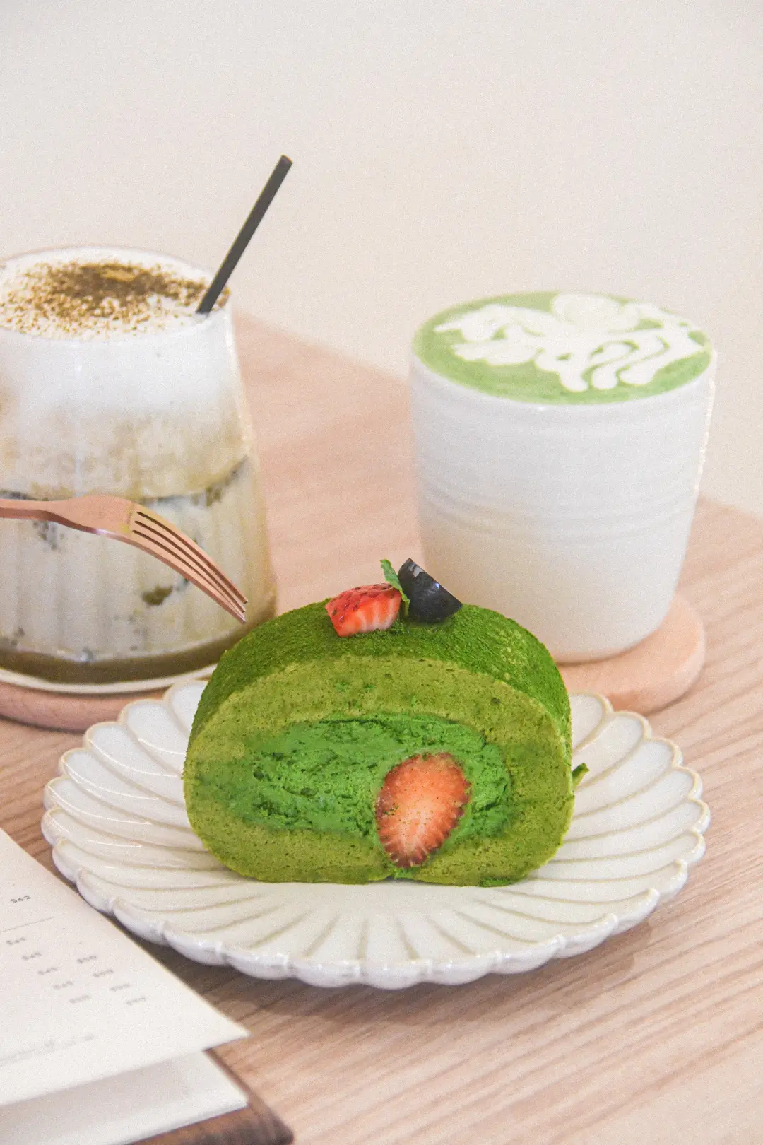 Strawberry Matcha roll cake