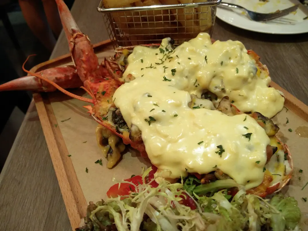 焗原隻芝士野菌龍蝦伴薯條