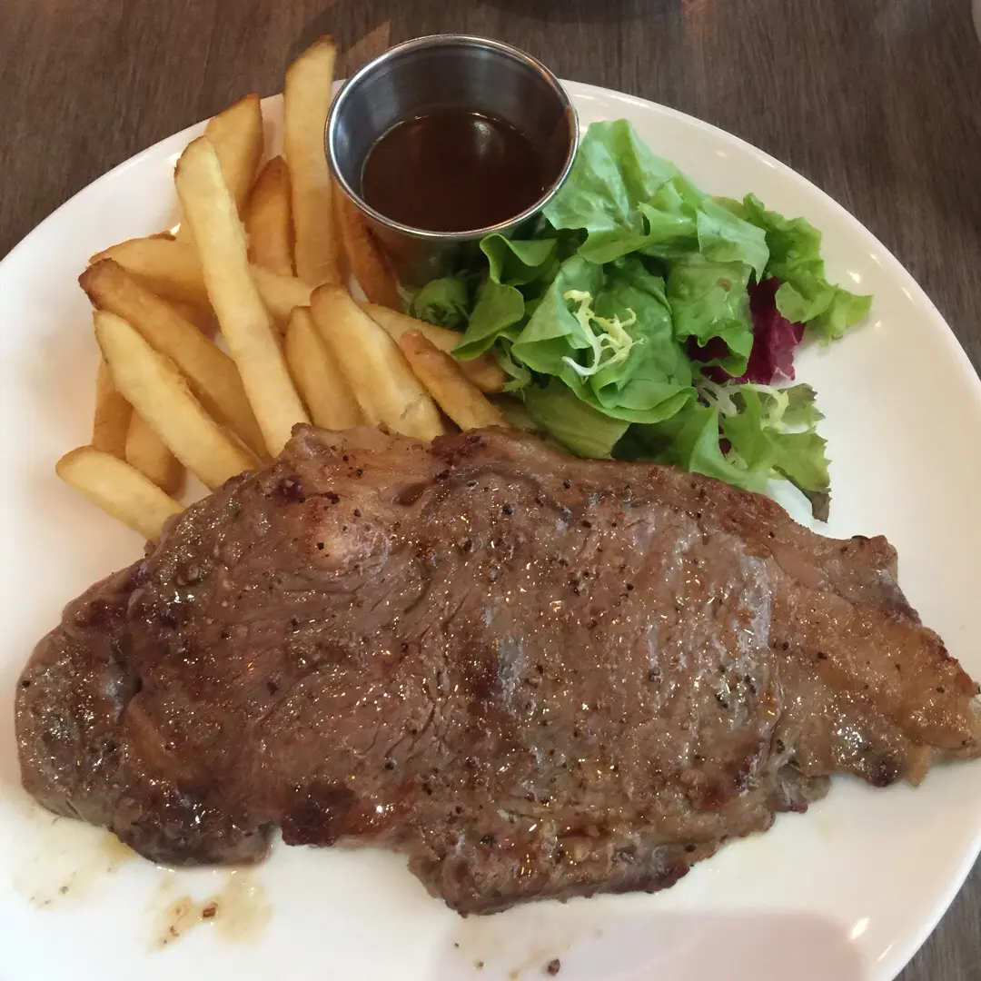 Ribeye steak with gravy plus French fries (set lunch)