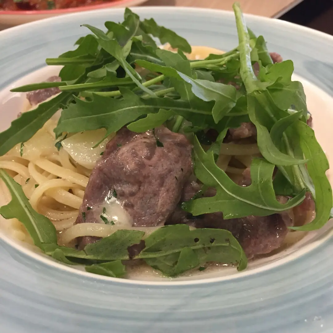 法國豬臉頰肉白甘荀火箭菜扁意粉