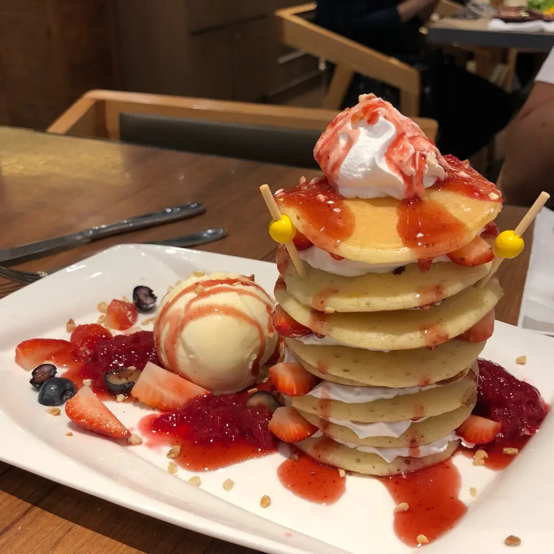 Strawberry pancake with ice cream