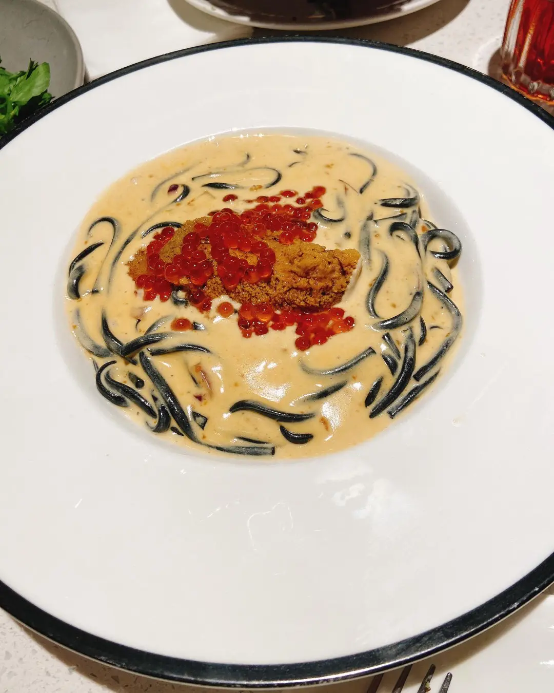 海膽三文魚子竹炭烏冬