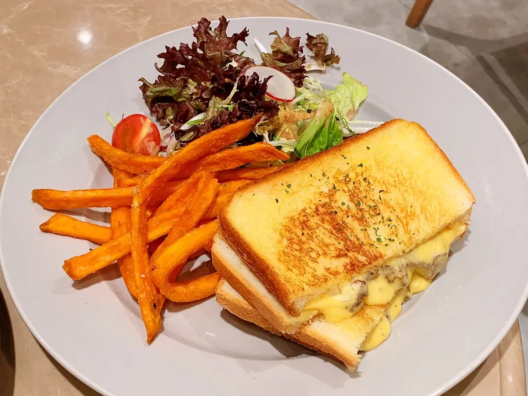 芝士和牛三文治配蕃薯條及沙律