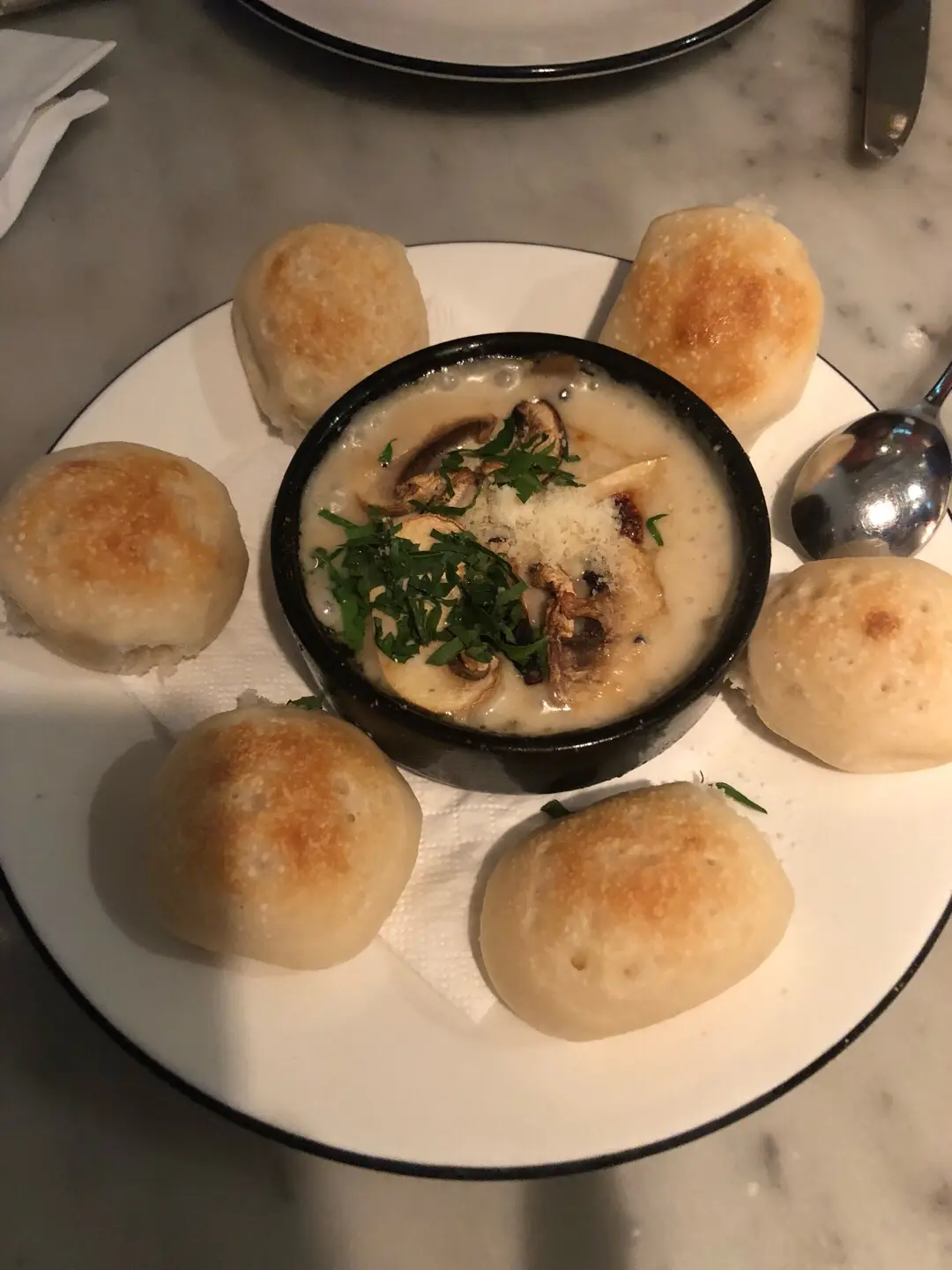 麵包球磨菇芝士醬
