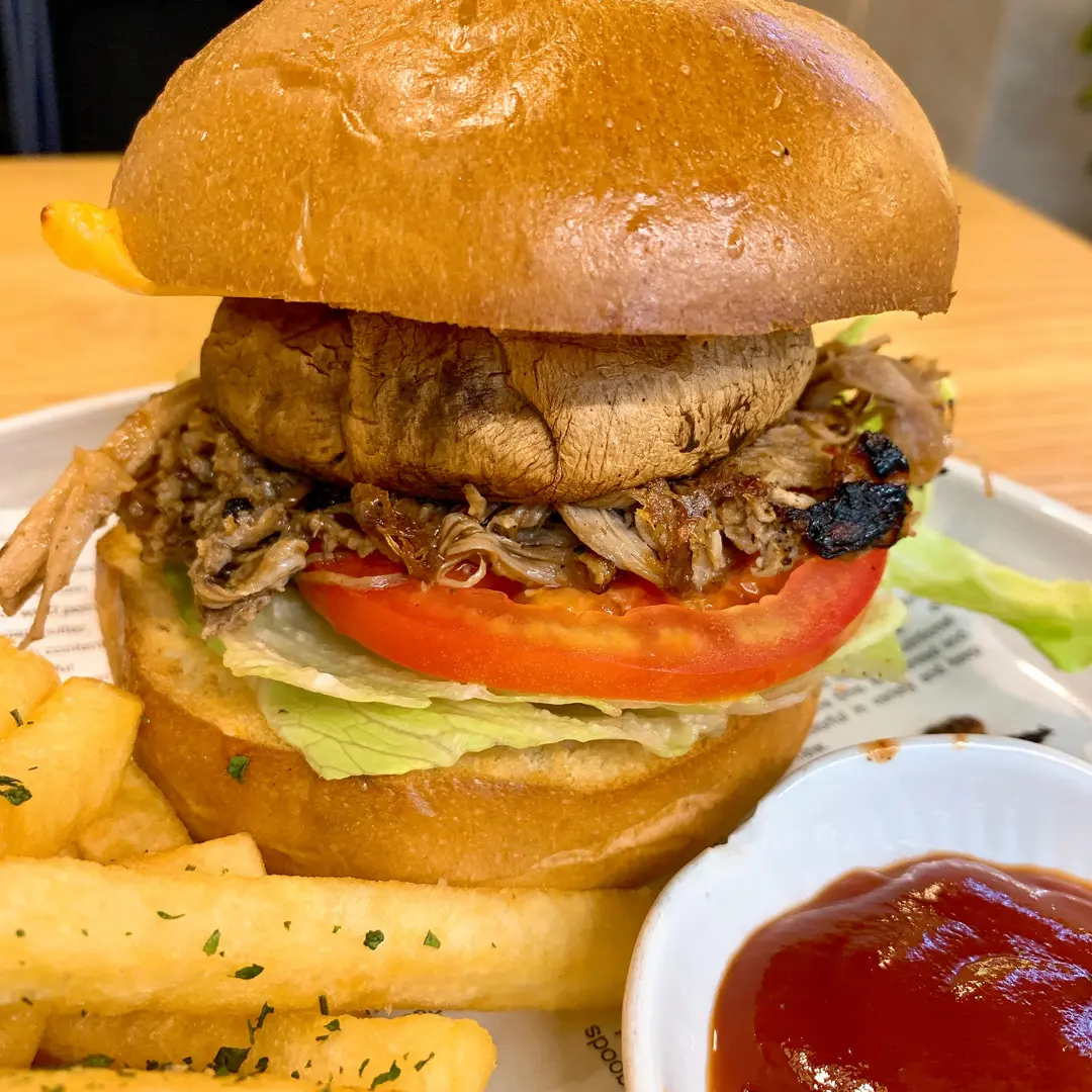 德蕯斯州橙汁BBQ手撕豬大啡菇漢堡
