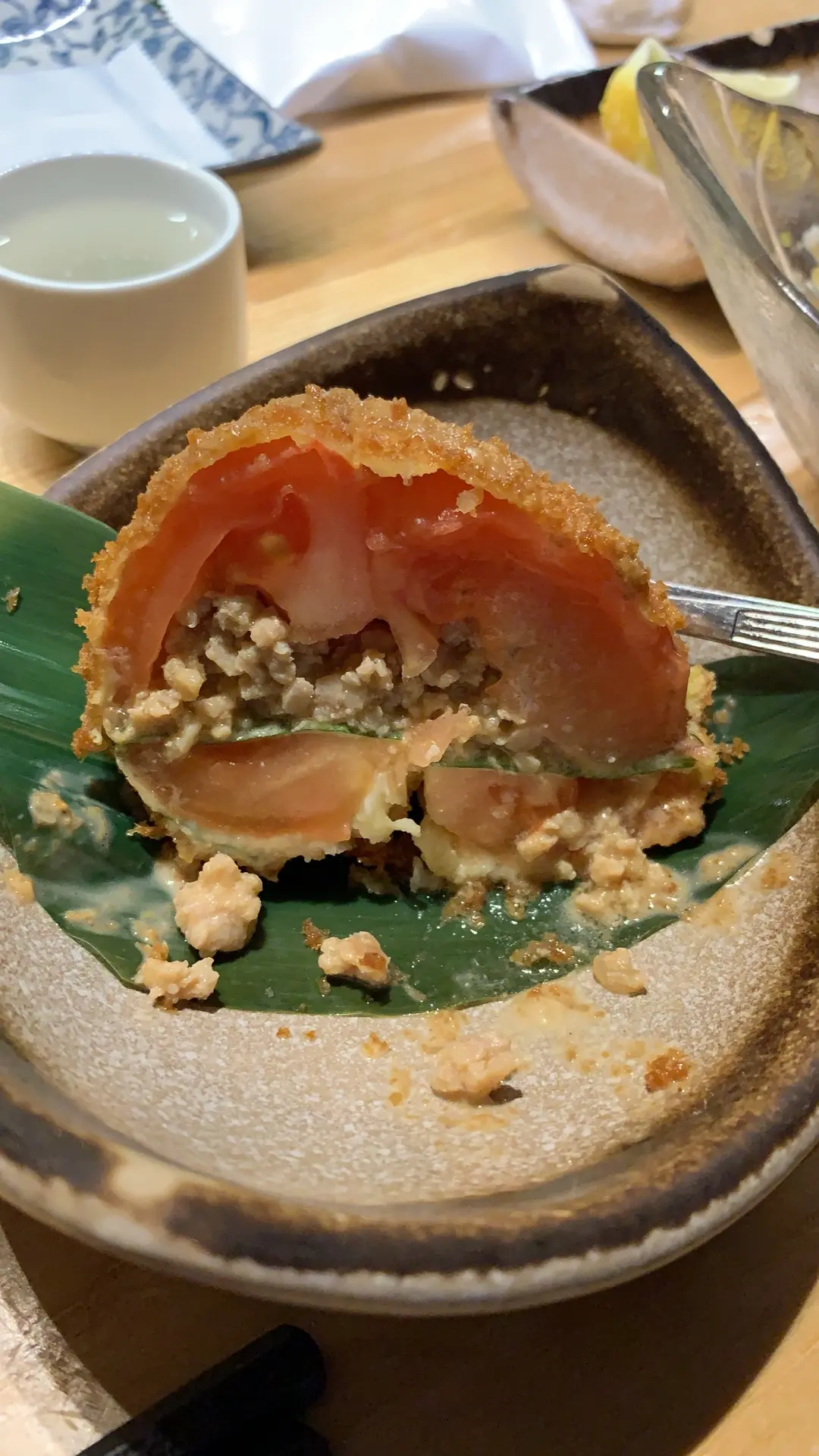 Minced chicken stuffed tomato