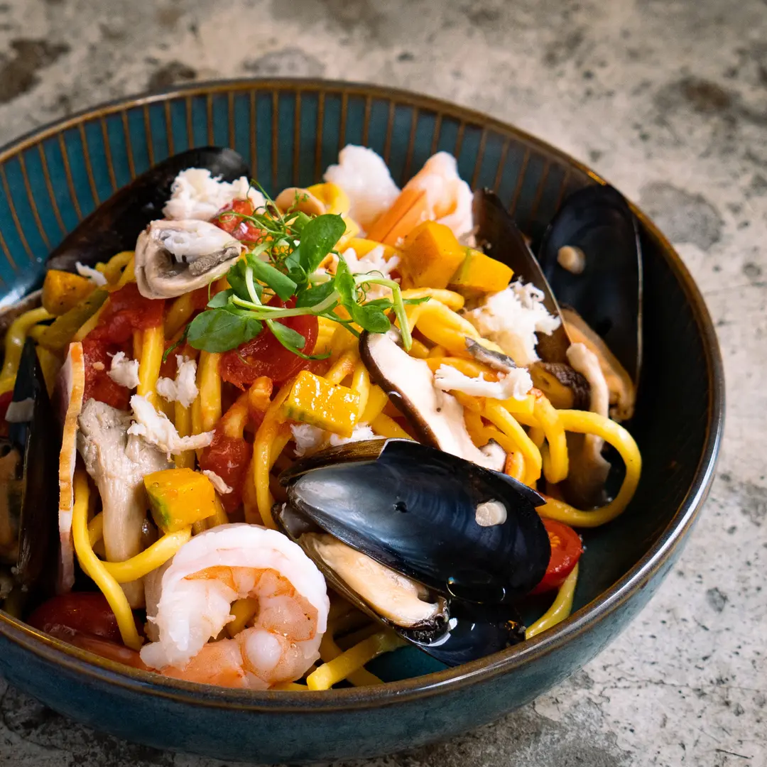 Thai Style Tom Yum Seafood Homemade Pasta