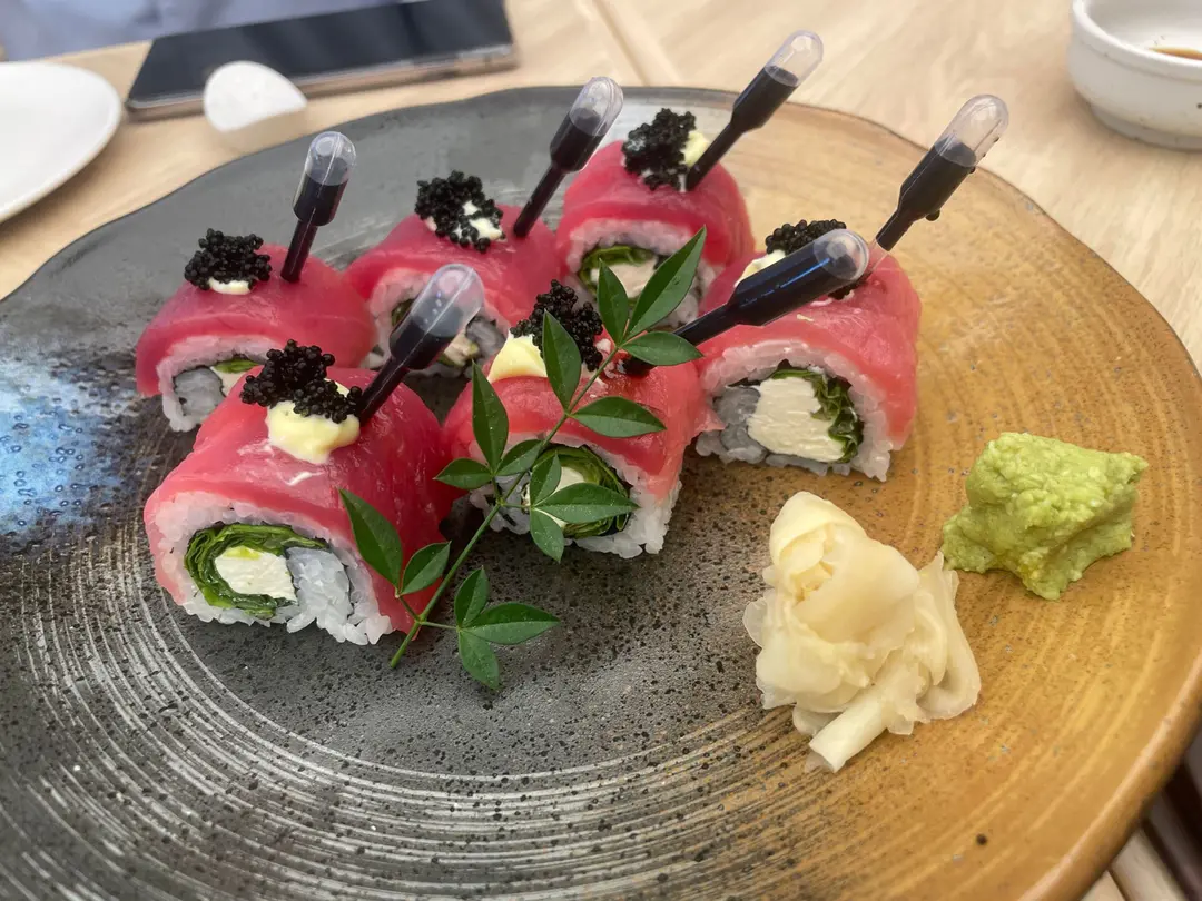 Tuna cream cheese roll with balsamic reduction