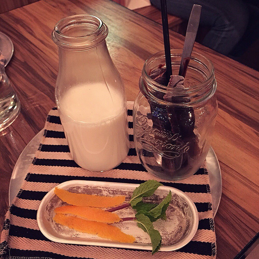 Ice cube + milk with chocolate
