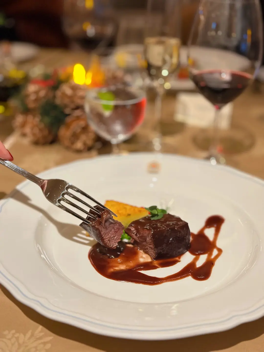 Braised Wagyu beef cheek with polenta and Barolo red wine sauce