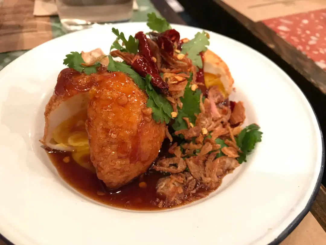 Fried eggs with chili jam