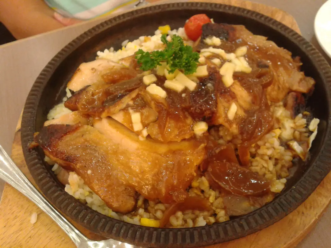 Set Dinner 9.鐵板焗芝士洋蔥雞扒配栗米煙肉飯 $138