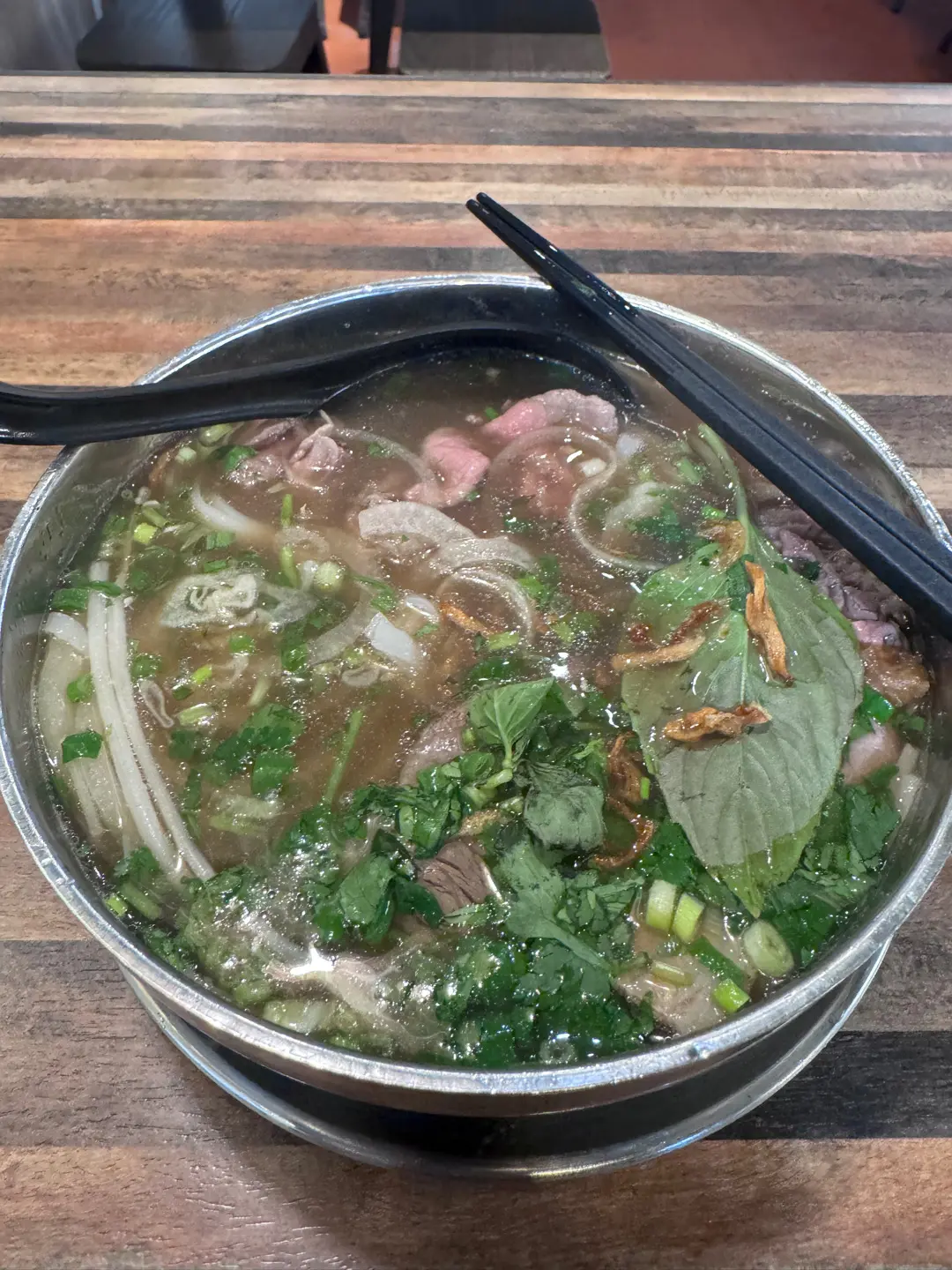 Pho raw and cooked beef