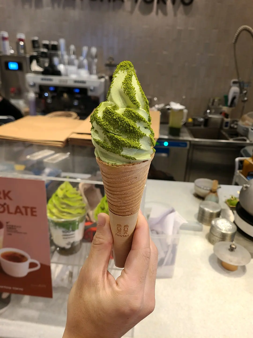 Matcha soft serve ice cream