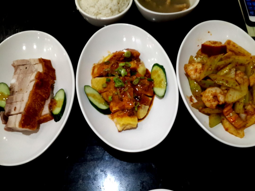 crispy pork belly, spicy chicken sumting, spicy prawn sumting