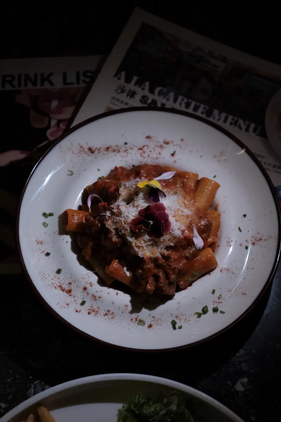 紅酒燉牛尾肉番茄羅勒巴馬臣芝士汁大通粉